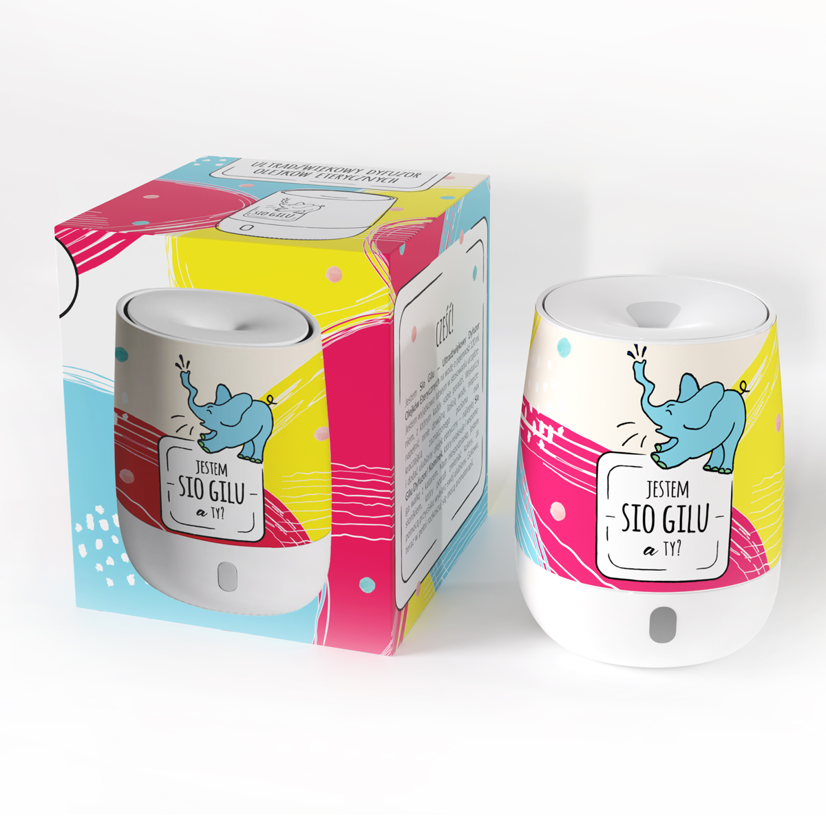 Wyjątkowy Dyfuzor Ultradźwiękowy Olejków Eterycznych na wodę Sio Gilu. Urządzenie jest niezwykle proste i bezpieczne w użytkowaniu. Całość obsłużymy za pomocą jednego przycisku. Wykonany z bezpiecznego materiału, który nie stwarza zagrożenia podczas użytkowania w pokoju dziecięcym. Niezwykle kolorowa, miła dla oka obudowa doskonale wpasuje się w każde wnętrze.